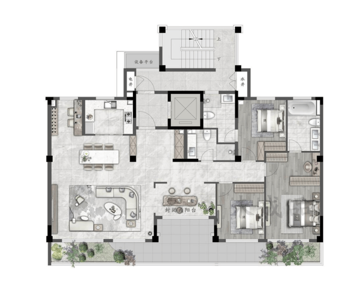 户型面积:平层185㎡,上叠208㎡,下叠224㎡