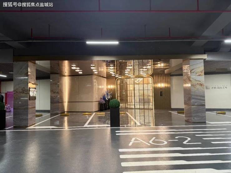 毫无夸张!车库入户大堂的柱子用的都是奢石,指引牌用的是金属浮雕。