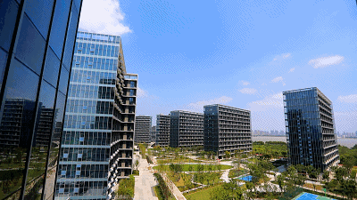 一走进园区大门,有种步入高端住宅小区的既视感。而纵观整个杭州,能将一个商办项目打造得如此大手笔的,或许只有钱塘ONE这一个。 围合式的布局,让钱塘ONE有了一个约3.3万方的中央园林,占项目总占地面积的三分之一左右。