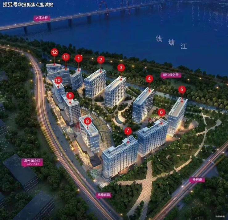 择址杭州西湖区之江度假区核心沿江宝地、西湖南片、之江南侧与“国际滨”隔江对望。 12幢12-17层板式建筑组成,东揽钱塘江浩瀚一线江景,举步沿江公园,365天尽赏天下奇观“钱江一线潮”; 23.4万方建筑体量,自带重餐饮商街、购物中心、文化、艺术、休闲、健康等功能一体的全能江湾 生活体系。