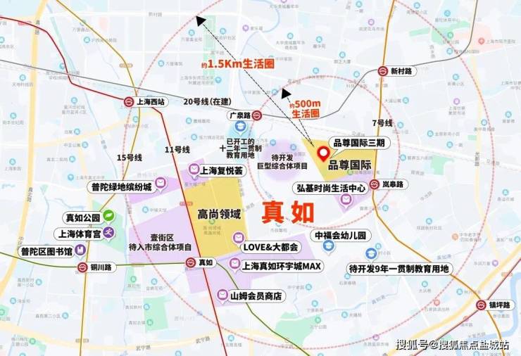 除此之外,品尊国际直线约1.5km的生活圈内,除了之前提到的中海环宇城max以及LOVE&大都会外,还有上海复悦荟、绿地缤纷城、山姆会员店,等待开发商的壹街区等等。