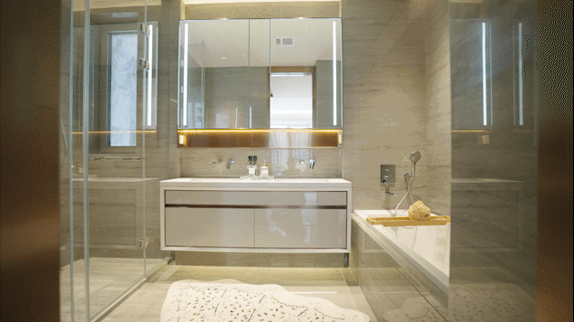 卫浴中新增了不少壁龛金属设计,尊贵感满满。