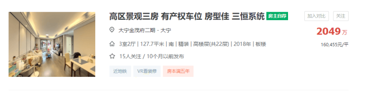 这个价格与同板块的大宁金茂府几乎倒挂了约500万左右的价格。