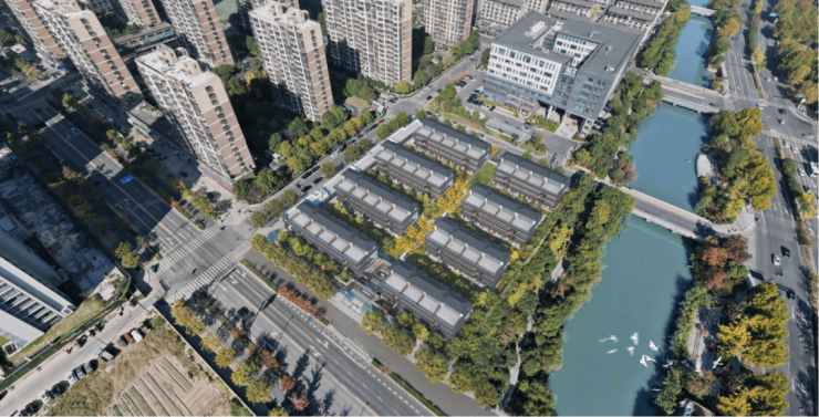 将传统中式建筑的礼序空间融入到创新的规划布局中,引山水入园,回归传统“街、巷、院、府”的空间体系,弱化路径感,形成由街入坊-置坊入巷-穿巷入院的归家礼序。