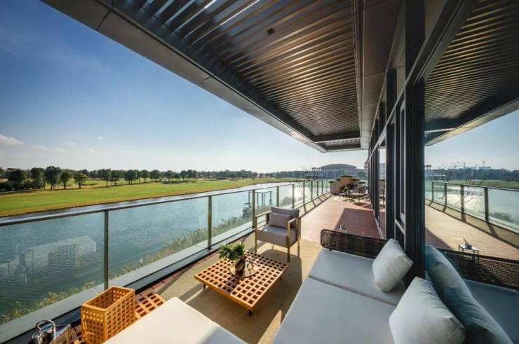 最后一栋独栋傲踞社区正央,与高尔夫球场直线距离不足50米,360°环幕视野将果岭起伏、湖光树影尽收眼底。这种“众星拱月”的地理位置,不仅是身份的象征,更意味着极致的私密性与景观独占性。