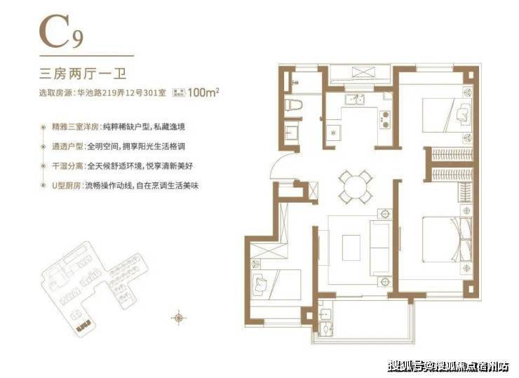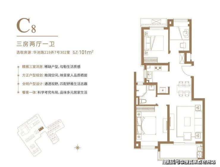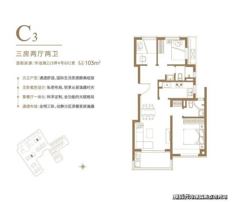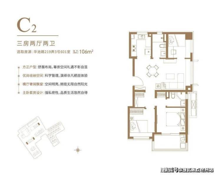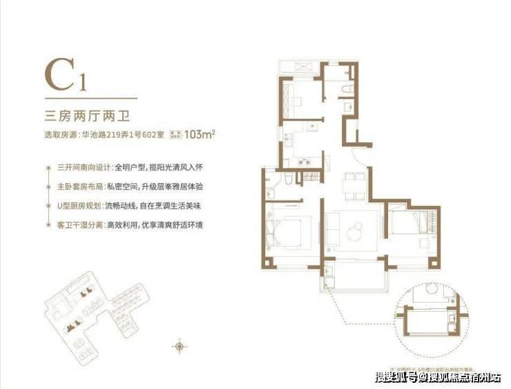 户型设计灵动,项目建面约97-106㎡臻谧洋房,清一色100平左右户型,均价约10.4万/平,无需积分,可直接认购。