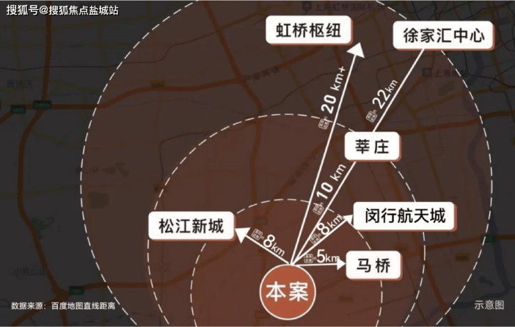 示意图,数据来源:百度地图直线距离