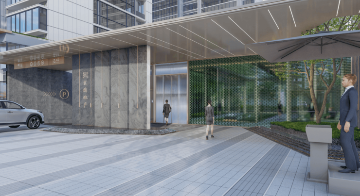 1、星级双入户大堂,考虑到现代人驾车出行频次更多, 将地上、地下两个入户大堂,全部设计成酒店式入口,仪式感全动线覆盖。