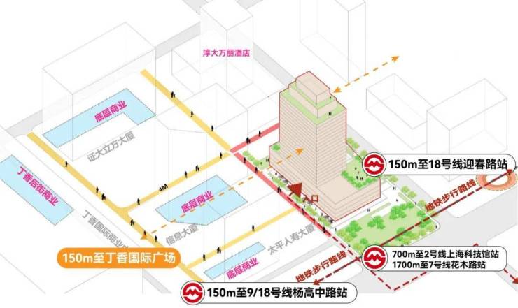 Ⅱ.三大商圈环伺:步行5分钟丁香国际商业中心,10分钟联洋广场、大拇指广场双矩阵MALL,项目1-4层自持约8000方商业综合体,网红餐厅、奢侈品店、艺术展览一网打尽,真正实现“下楼即生活,出门即世界”。