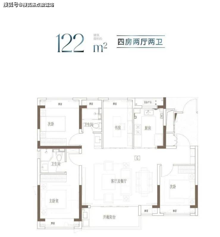 户型特点:宽境4房,拓宽空间尺度;大开间、进深短,通透采光;主卧独立卫浴,优雅随心的寝居感受。
