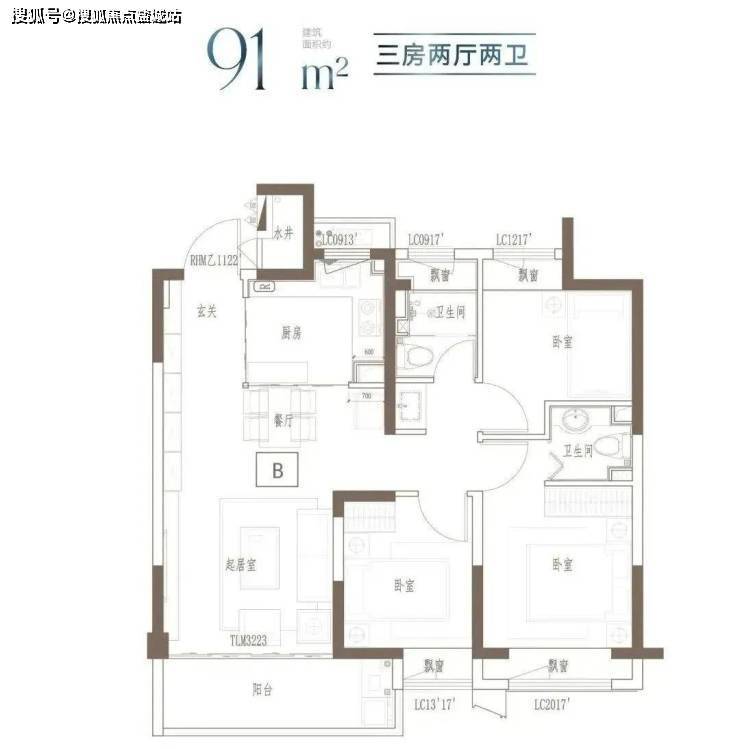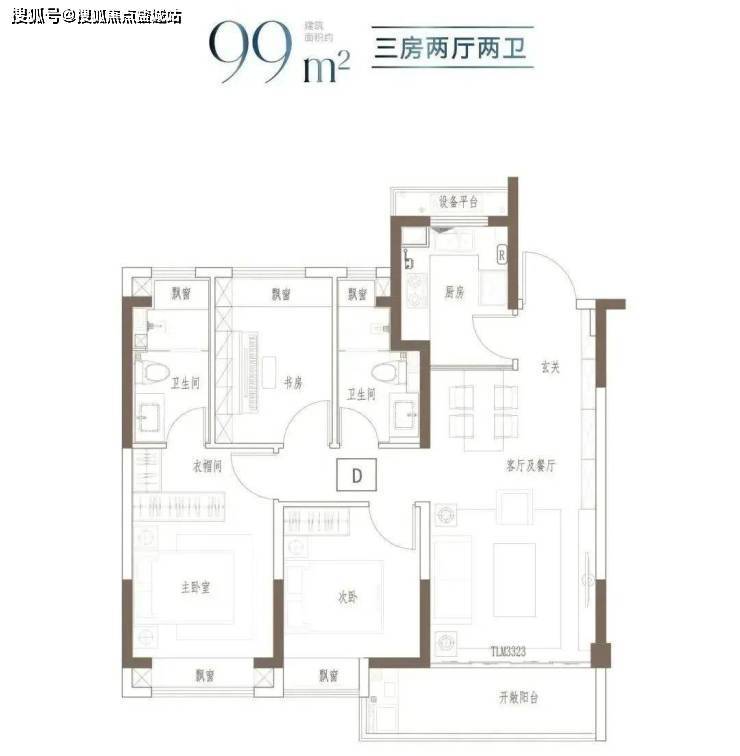 建面约99㎡ 3房2厅2卫▼
