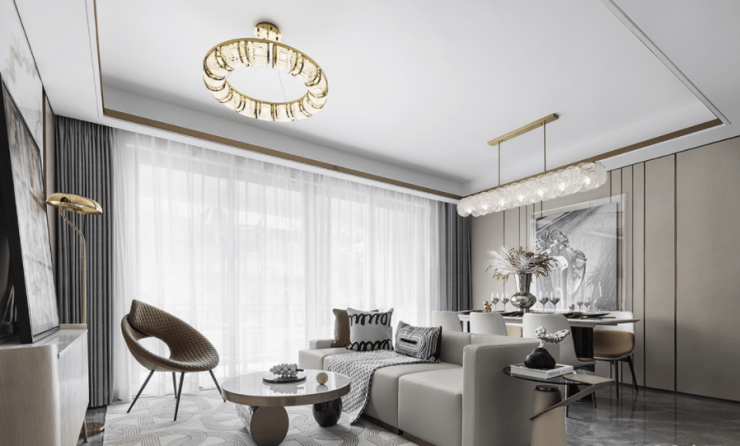 值得注意的是,户型建面虽只有约108㎡,却设计了横厅,室内空间更加开阔,餐客一体直连阳台,室内敞亮,视野效果绝佳。