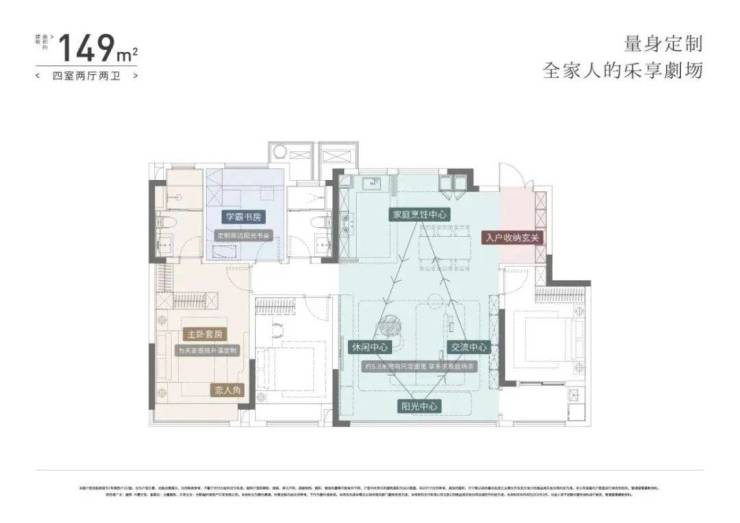 但总价约300万左右,在当下市场来看,还算具有一定性价比。149户型市场认可度较高,四房两厅两卫设计,户型方正,四开间朝南,居住实用性强。但也存在两个小问题,第一厨房较小,不到6个平方;第二公卫不是干湿分区,后期生活便利性不足。