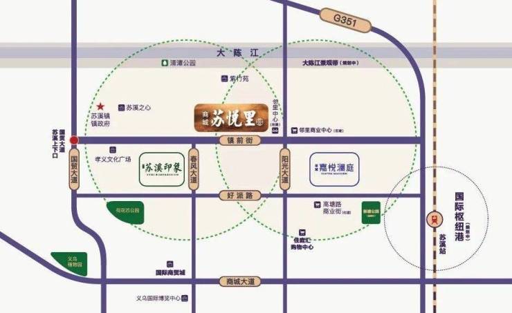 距离义乌(苏溪)国际枢纽港约3公里,紧邻苏溪印象小区、紫竹苑小区、油碑塘社区,镇域常住人口约21万人,坐享镇芯客流红利,现在已繁华,未来更璀璨。