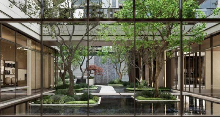 一层跨二层的立体景观,规划云台水瀑、健身场域等,常规社区难得一见