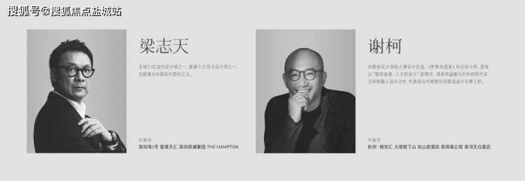 室内设计:大师精工——全球31位室内设计师之一,香港十大顶尖设计师之一,也被誉为中国现代简约之父;《梦想改造家》知名设计师,坚持以“做有诚意、人文的设计”的理念,将具有温暖与关怀的现代东方风格融入设计之中,也具有当代禅意空间建造设计巨擘之称。