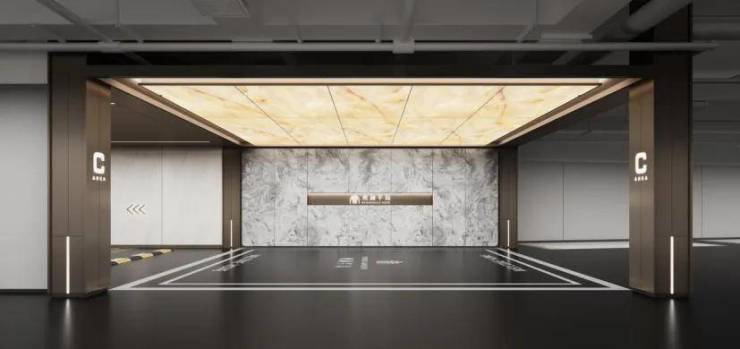 地下车库同样充满豪宅式的审美与质感,酒店级迎宾式光厅设计理念搭配顶部透光仿云石装饰,地下车库大理石纹理的古典雅致与现代艺术的灵动韵律升华着业主的归家之旅。