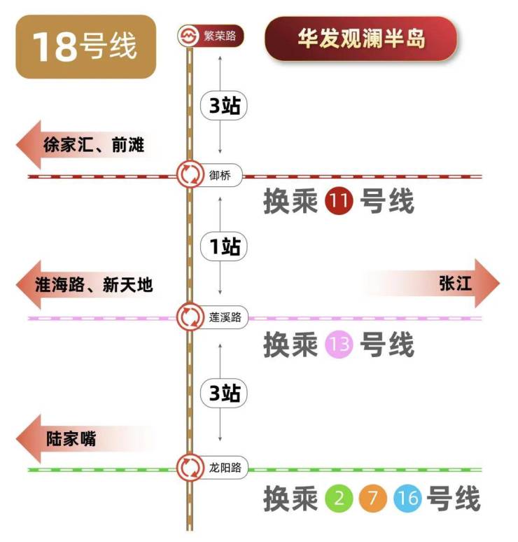 特别是18号线是名副其实的“换乘王”,无缝换乘即可直抵浦东浦西重点商圈核心。