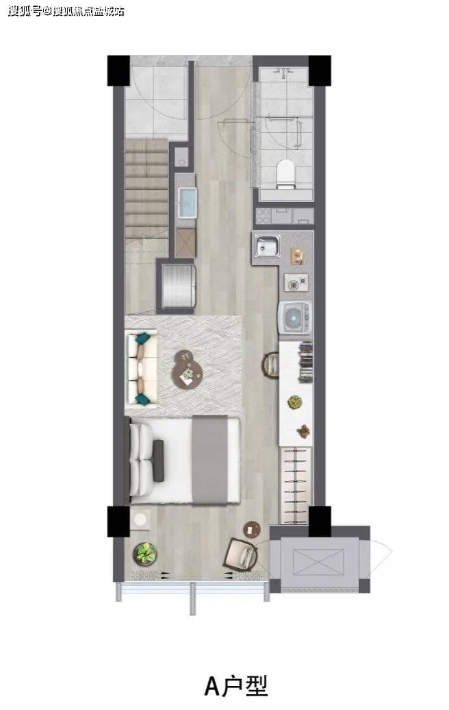 A𝟏户型-约𝟒.𝟕𝟗米层高,建筑面积约𝟒𝟓㎡