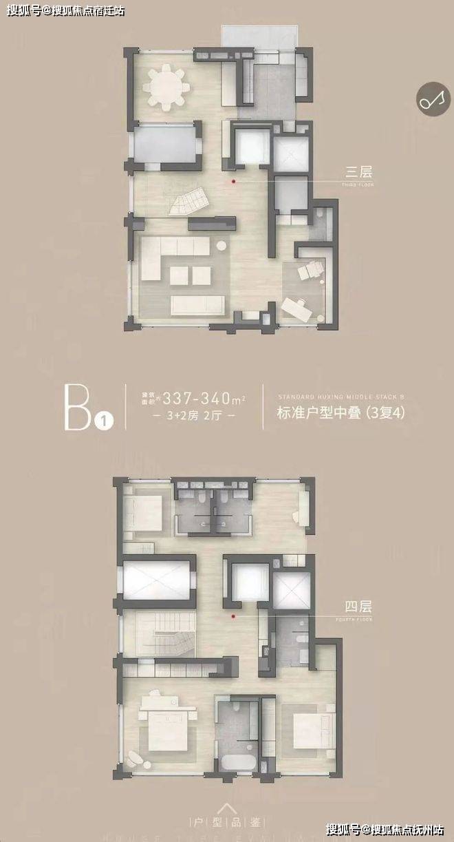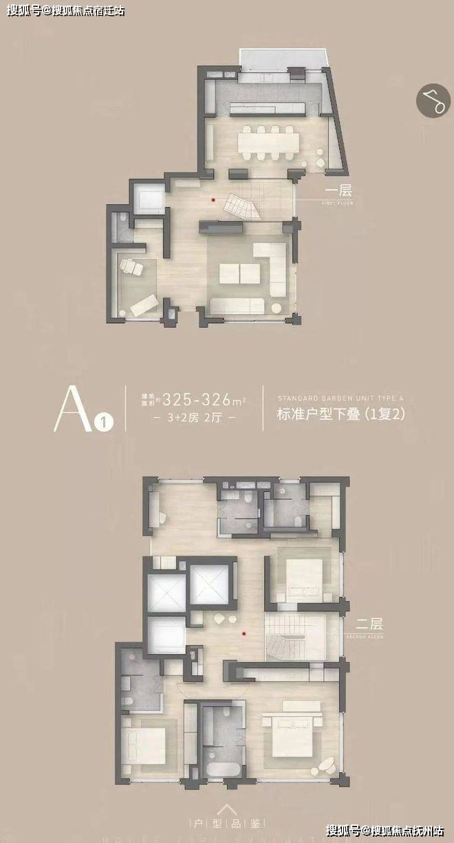 主力户型为约310-360㎡叠墅(1复2,3复4,5复6,共6层),户型图如下: