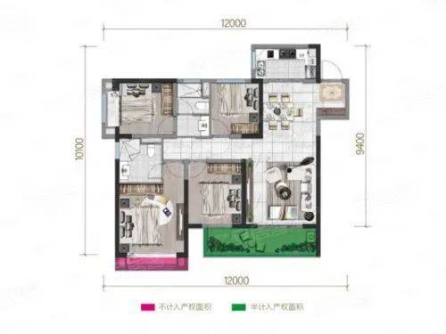 客厅与次卧共享大景观阳台,整体空间感好,客、餐厅同面宽竖厅设计,布局动静分离,休息区和活动区互不干扰。