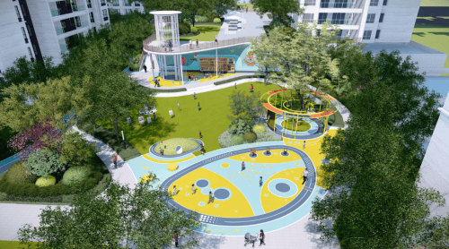 据介绍目建成后将有65个景观节点,有户外会客厅、全龄健身场地、儿童活动场地,给业主营造多种场景,业主有多个共享互动的功能空间。