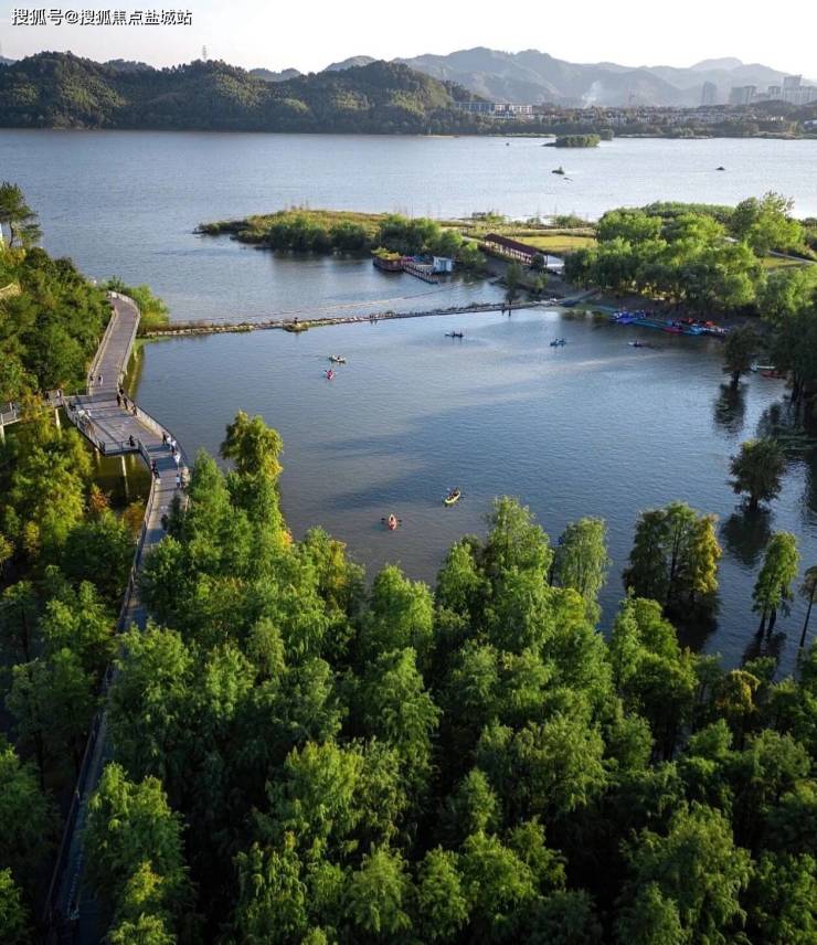 约 64.5km2青山湖国家森林公园,水域面积是西湖的 1.6 倍,森林覆盖率高达约 82%,约 100 万方国内罕见水上森林,被称 为“杭州版亚马逊”;年内负氧离子农都 3088 个/m3,超世界卫生组织清新空气标准 2 倍;在湖山绵延中,慢跑/骑行/垂钓 /泛舟,随时享受一场原地旅行。