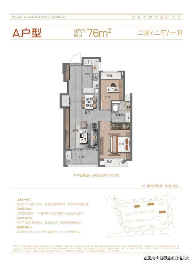 连建面约76㎡2房都能做到创新分户S墙,市面罕见,内嵌收纳,也可将冰箱外移,释放厨房空间,营造合理餐厨动线。