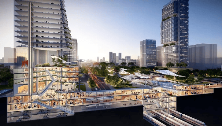 目前周边有约17万方永旺梦乐城和基盛万科里,未来,85万方番禺广场TOD规划,打造“超级枢纽+中央公园+地下商业”的模式,汇集休闲、餐饮、娱乐、文化等资源,定位“番禺未来新中心”,这座巨无霸会向上生长,打造约40万平巨量商圈,以260米的地标撑起城市天际线,又会向下扎根,深挖约18万平地下空间,造就一座地下都市。