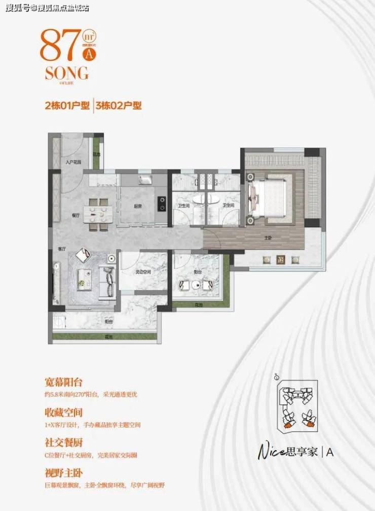 总价低、朝向好、户型靓,是它的卖点,首推建面71-87平三房,现在加推70-100方的三-四房