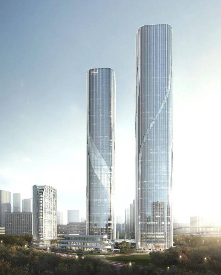 项目邀请国际知名大师团队EID ARCH首席建筑师姜平,通过双子超塔的建筑形象将智慧之门以抽象化的形式呈现出来。作为地块南侧城市轴线的终端, 双子塔的门户形象回应基地周边的城市空间关系,与整体的城市设计相协调。