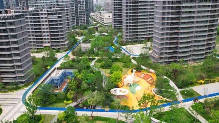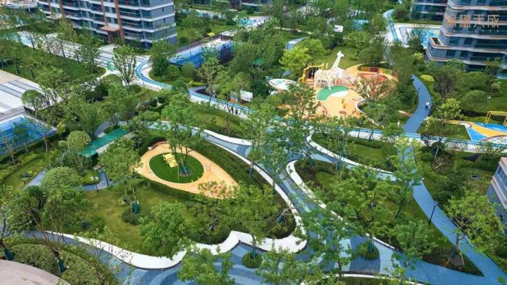 当然,人车分流的社区里,空中花园和全龄生活空间设计,在满足园林覆盖的同时,还能有更多的交互空间。