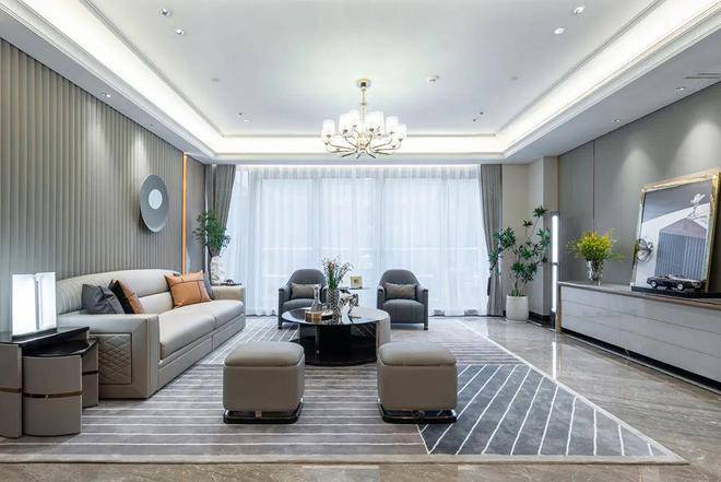 自诩看过不少奢阔豪宅,但一走进A户型300㎡样板房,还是忍不住嗟叹。户型方正大气,做了五房两厅五卫的精致分隔,规避了传统大户型进门一览无余的观感,厨房、餐厅、客厅、双景平台等各个空间层层递进,营造出井然有序的生活动线。