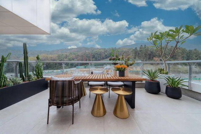 而那些外凸的小盒子,大大延展了云栖名筑的建筑空间,有的盒子开放式设计,6米多宽,3米多长,20个平方左右的大小,可以媲美一般90方房子的主卧的大小,辽阔到让人拥有了一个私属性的“城市观星台”。