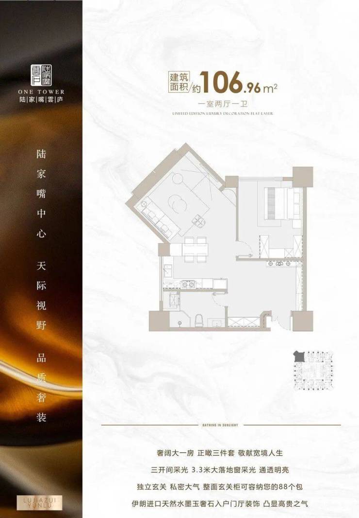 陆家嘴上海中心旁「陆家嘴·雲庐」不限购行政公馆,在售面积约98-131㎡1-2房,现有少量房源在售;总价7字头起拥内环内品质不动产,投资,自住皆宜。