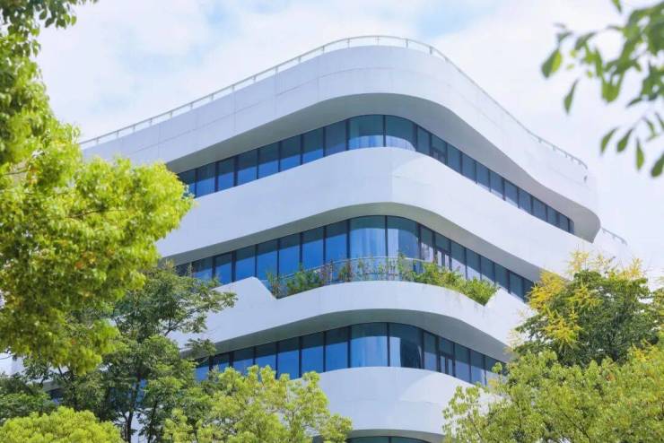 项目打造的单元式玻璃幕墙系统采用高性能LOW-E玻璃与阳极氧化铝板,以行业领先的装配精度实现立面纯净质感。以可持续的建材与工艺,为企业营造低能耗、高舒适的绿色办公环境。