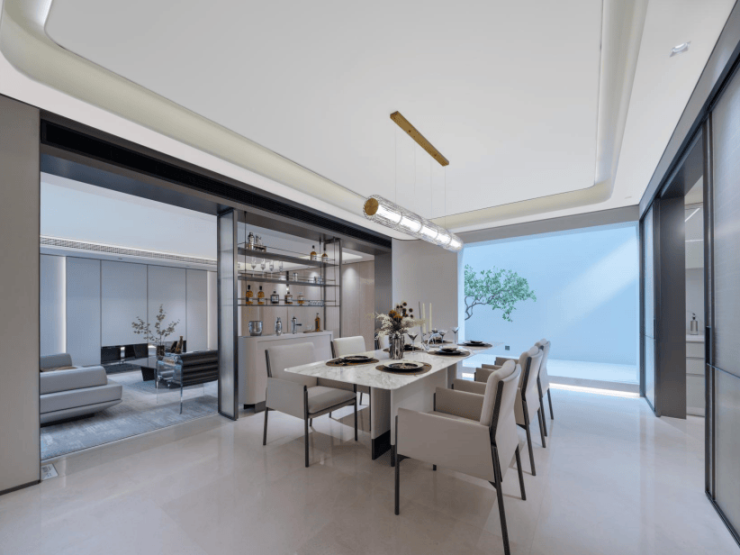 户户独立入户,私享地上庭院空间;负一层约5.8米层高,可规划私家会所,家政空间等;地上首层层高约3.6米,南向三面宽,横屏光幕景观窗,让风景和居境无间相容,以高度匹配居者的非凡气度。超多拓展空间,超高空间利用,以收放有度的格局,盛载家族同堂图景。