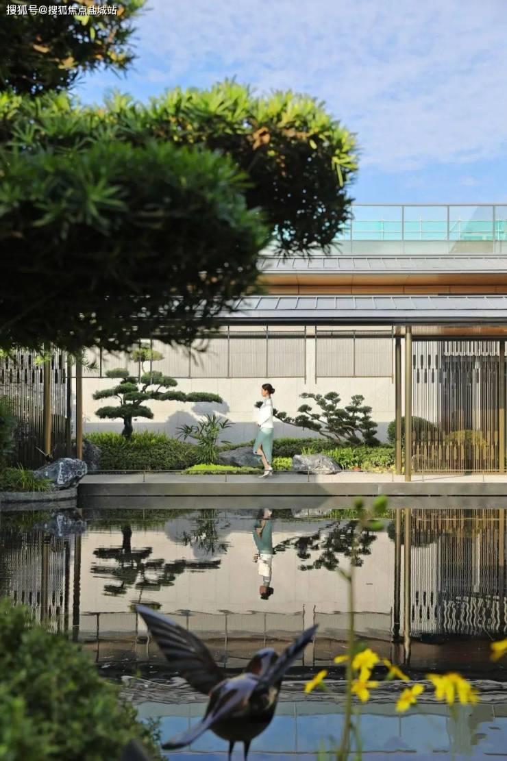 你看,坡顶飞檐、阶梯入门、青松绿植、格栅围墙……高门大户般的门头,流转着东方气韵,再现风雅之境。