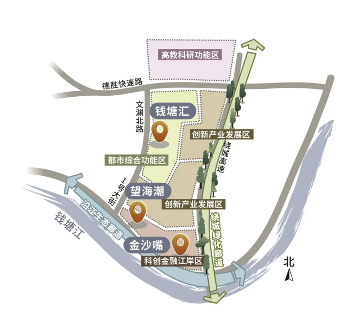 东部湾新城作为钱江新城二期向东拓展区域,锚定“都市科创城”的发展目标,围绕科创兴城、产业赋能、活力江湾三大发展策略,以科技创新和总部服务为引领,产业升级和提质增效为内核,努力实现建设杭州市城东智造大走廊研发总部与技术转化中心。