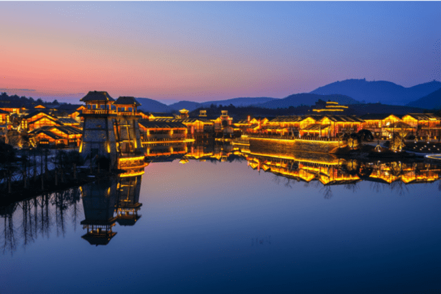 蓝城茅山温泉桃李春风,承蓝城小镇精髓,择址第一福地茅山山麓,山间云雾缭绕,空气轻盈,让生活回归山湖林海。
