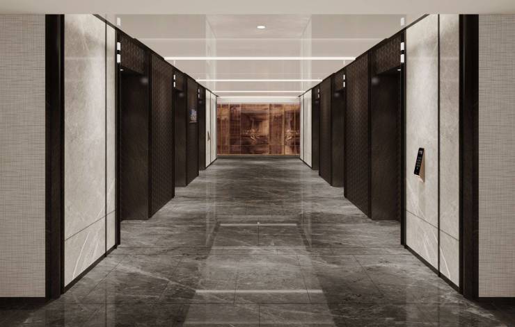 约11m挑高大堂,恢弘气派,以现代雅致风格引领,甄选石材、木饰面等材质,将自然与时间的艺术感知融入空间;定制打造至高规格主题泛会所空间,涵盖高尔夫练习室、现代艺术展厅、健身房等,为峯层带来都会私享家的锋尚生活方式。