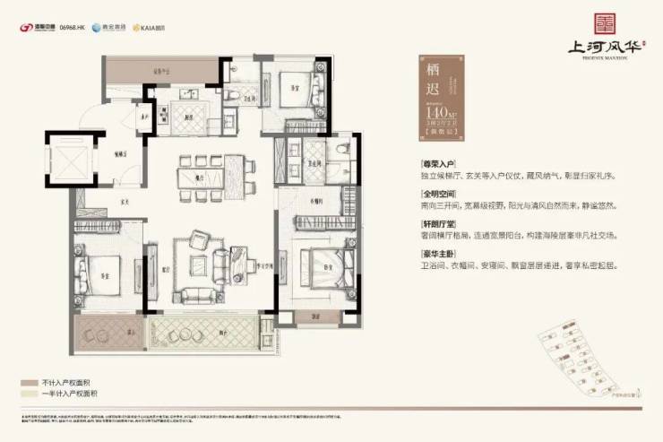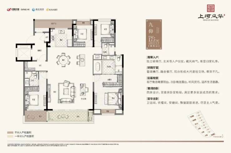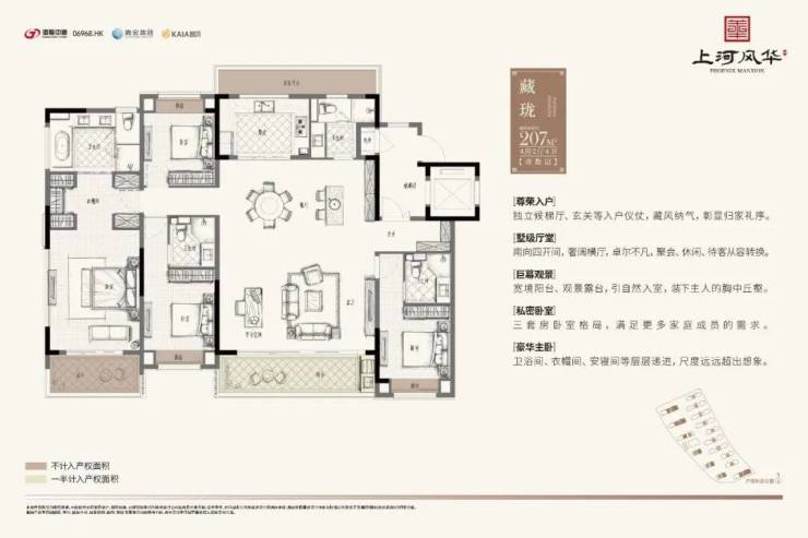 洋房产品均为精装交付,建面约140㎡、175㎡、207㎡,并采用六恒科技系统,包括“恒温、恒湿、恒氧、恒静、恒智、恒洁”六大科技标准。
