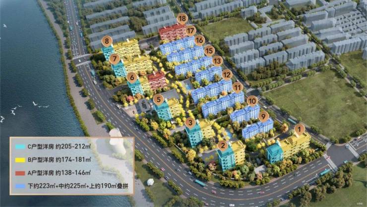 上河风华园项目占地67095㎡,总建筑面积约151749㎡,仅打造洋房和叠墅产品,1.49的容积率,项目A地块规划打造16栋7-9层产品,其中包含8栋洋房和8栋叠加,建面约140-225㎡的改善住宅产品,共计372套房源。