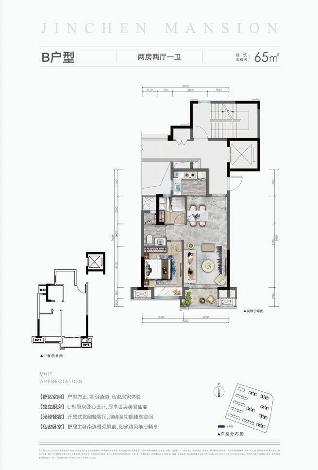 The Jinchen Mansion has a volume of over 70000 square meters and provides exquisite residences with a construction area of approximately 65-87 square meters, rewarding every resident who pursues a quality life with magnificent quality. Every detail here embodies a unique design concept, aiming to create a new chapter of living, allowing every homeowner to enjoy a comfortable, convenient, and high-quality living experience.