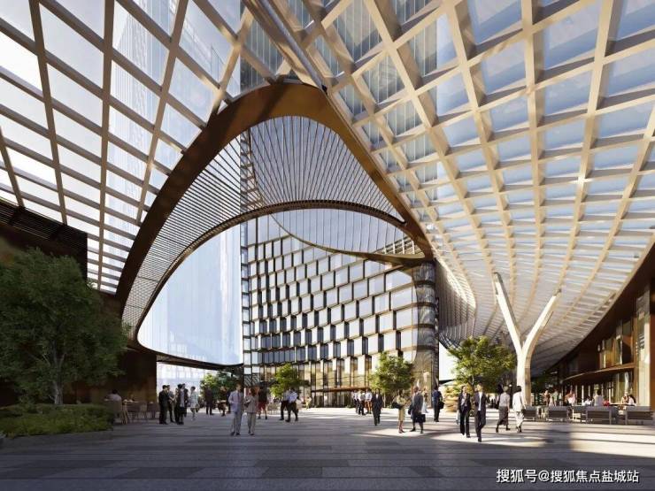 中央庭院、酒店广场、屋顶空中花园、商业盒子、办公空间、滨河休闲空间......在巨型“天幕”的掩映下,每个空间模块独立又互相关联,国际感和艺术性相结合,空间变化张弛有度。
