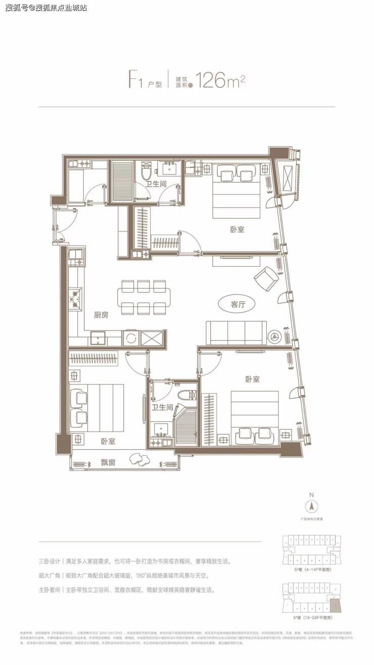 三卧设计|满足多人家庭空间需求,可灵动规制书房或衣帽间,奢享精致生活。