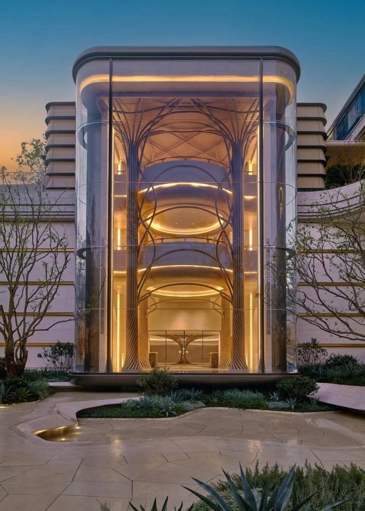 【“生机之亭”观景环厅】:三层观景环厅,高约14米,全落地玻璃,用足8吨不锈钢,打造顶天立地的“生机之树”。