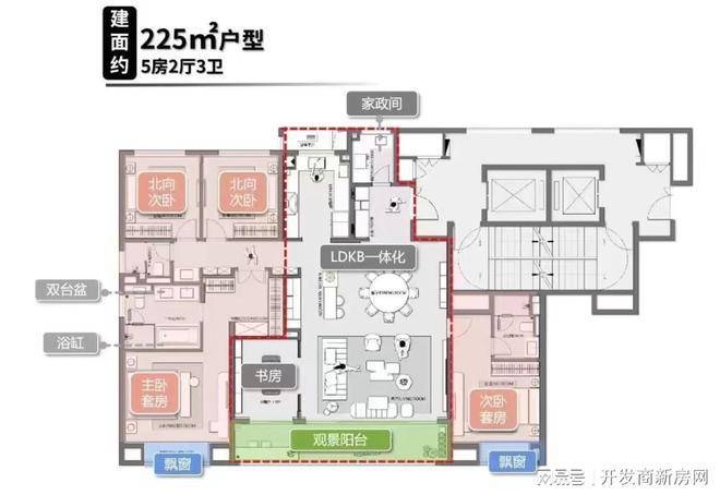 |建筑面积约225㎡ 五房三卫 ● 奢适面宽:在雅奢的空间内,停泊丰盛的宁静 ● 光合宽台:自由侈度的风潮,光影流转、岁月如歌 ● 风云聚场:LDK一体化设计,化身家的空间枢纽 ● 尊奢套房:升华家人间的情感,让生活自在从容 ● 社交星厨:品尝人生的百味,撷取舌尖的愉悦 「拾澜」|建筑面积约185㎡ 四房三卫