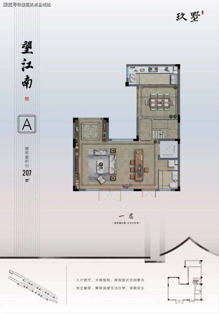 低容积率,区域内独此宋韵 合院建筑,天地为视界 阔境客厅及三层空间奢享 独立泊车空间,尽显尊贵 A户型 建面约207方 望江南