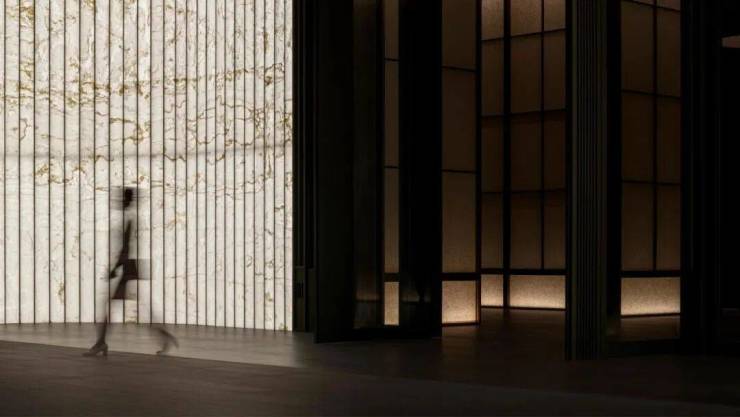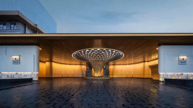 这种对审美的孜孜以求,延续到了约40m长、约4.8m高的大尺度界面门庭。苏州招商序在其设计上采用编织手法打造的“栖心之巢”艺术装置,不仅撑起了「天下四聚」的体面仪式,更升华为一段随着光影延时旋转的温度之旅。